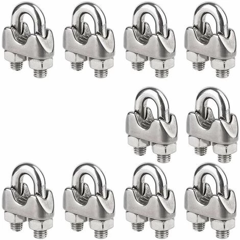 Les pinces à câble sont faciles à installer, à démonter et à réutiliser. Deux couches de câble métallique sont insérées dans les boulons en U et serrées. Convient aux câbles métalliques de 4 mm et à d’autres types de câbles. Largement utilisé pour les auvents suspendus, les lampes de jardin suspendues, les couvertures, les cordes à linge, les drapeaux suspendus, les appareils de fitness et autres cordes en acier inoxydable.