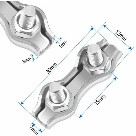 【Large Gamme d’Applications】Le serre câble acier pour corde sont utilisés à merveille, ils peuvent être utilisés pour sécuriser des cordes, le fil, le corde à linge,la construction marine et de bâtiment et d’autres sites en acier inoxydable.