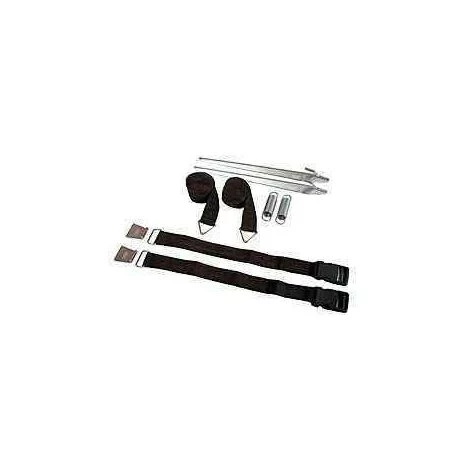 Composé d’une sangle noire réglables de 11m, 2 piquets et 1 ressorts de tension