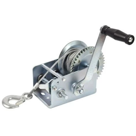 Treuil manuel d’une capacité de halage de 1100 Kg à deux vitesses avec cliquet réversible et bobine débrayable pouvant se monter sur tout type de remorque et peut remplacer entres autres les treuils GOLIATH 9N1 grâce à la platine d’adaptation disponible dans « Mes accessoires essentiel » ci-dessous mais aussi le treuil DL 1402 , DL 1602 , DL 1800 , DL 2000 et DL 2500 en vérifiant les entraxes de fixation du treuil ( voir image N° 2).