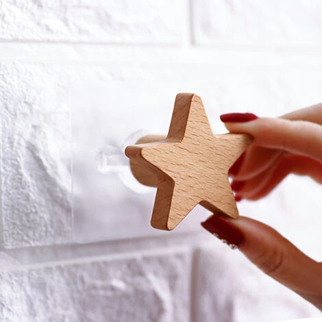 facile à installer: Il y a 2 façons d’installer un crochet en bois naturel. 1. Collez-le sur le mur avec une ventouse auto-adhésif et tournez directement et installez le crochet en bois.