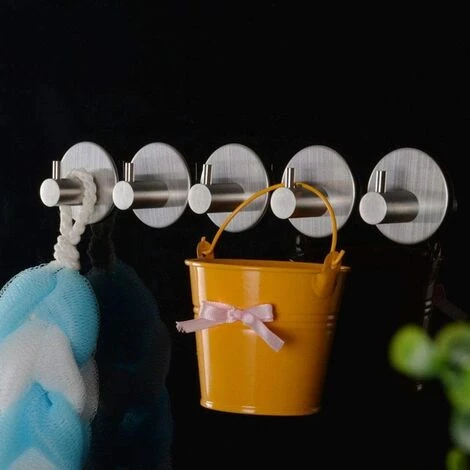 - 4 × crochet auto-adhésif ,4 crochets à serviettes auto-adhésifs, crochets de peignoir ronds, crochets muraux, porte-serviettes de salle de bain et de cuisine en acier inoxydable, patères, pas de perçage