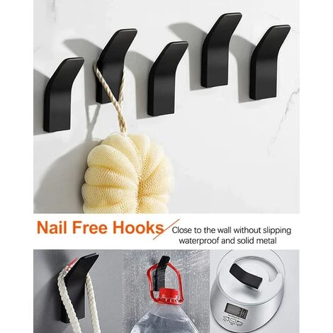 design décoratif moderne: Le auto-adhésif Crochets adopte un design d’angle Arrondi, courbé pour Prevent scratching.Beautiful mat revêtement noir résistant aux égratignures de tous les jours pour assurer une résistance et une durabilité et élégant manteau recherche crochets outils adaptés à la plupart des décors