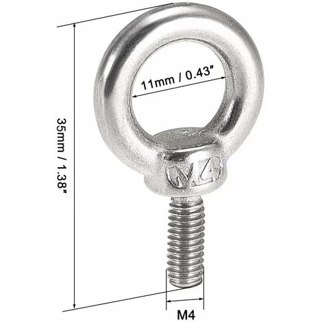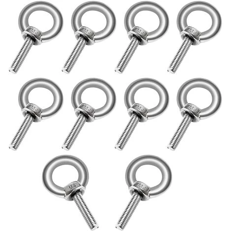 【Caractéristiques du produit 】10 boulons à œil M4*10 – Longueur totale : 35 mm – Longueur du filetage : 16 mm – Diamètre intérieur de l’anneau : 11 mm – Diamètre extérieur de l’anneau : 19 mm.