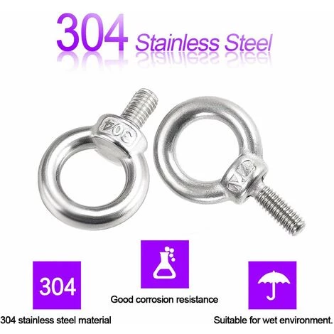 【Matériau de qualité 】acier inoxydable 304, haute dureté, résistance à la corrosion, peut être utilisé dans des environnements humides. La surface du boulon à œil de levage est lisse, la force est uniforme, il n’est pas facile à endommager, et il est durable.