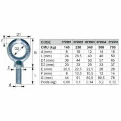 Anneau De Levage Femelle LEVAC – Ø 6 Mm – Ø Intér. 20 Mm – DIN.582 – CMU 70 Kg – 5026AG