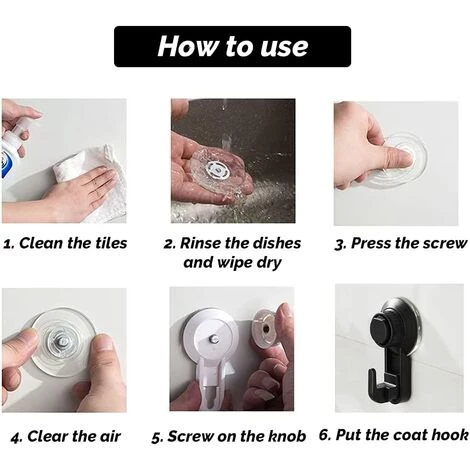 - Crochets à vide polyvalents pratiques dans le ménage et pour les voyages:À l’aide du crochet avec ventouse, le rangement devient un jeu d’enfant. Idéal pour une utilisation dans la cuisine, la chambre, la salle de bain et les toilettes. Par exemple, pour suspendre la main/la vaisselle/la serviette de douche/de bain, le sèche-cheveux, les guirlandes lumineuses, la couronne de porte et d’autres décorations.