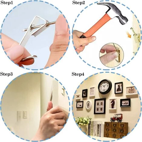 Le forfait comprend: un stockage pratiques, y compris 50 crochets pour images et 50 clous, quantité suffisante pour votre usage quotidien.