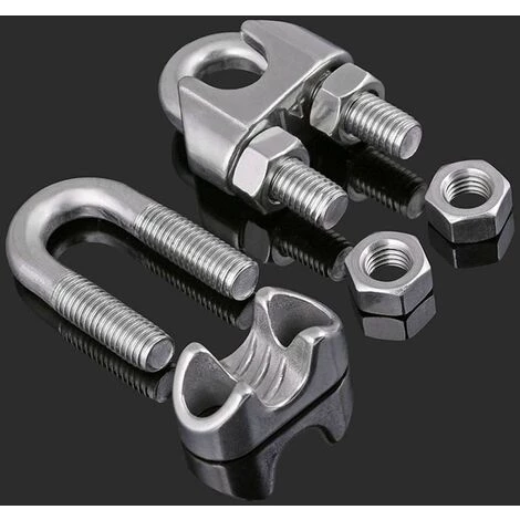 Caractéristiques du produit: Le clip de câble métallique en acier inoxydable à boulon M6 a les propriétés de résistance à la corrosion, de dureté élevée, de longue durée de vie et très durable. Un boulon en forme de U se compose d’une selle forgée et de deux écrous.