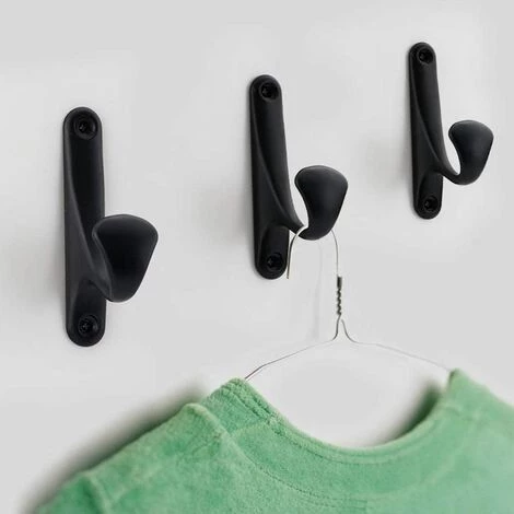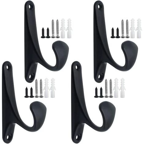 Matériau : alliage de zinc. Couleur : noir mat. Dimensions : Crochet : 8,5 x 1,5 cm. Distance des trous : 7,2 cm. Autres tailles : Vis autotaraudeuse : 4 x 16 mm Vis inox : 3,5 x 25 mm Fiche d’extension : 6 x 30 mm. Contenu : 4 crochets à fixation murale. 8 vis autotaraudeuses. 8 vis en acier inoxydable. 8 bouchons en caoutchouc.