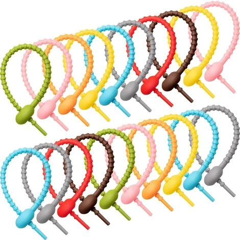 20 attaches colorées en silicone pour sac, attache à pain, attache torsadée en caoutchouc réutilisable, attaches en silicone tout usage, attaches de câble, attaches de serpent domestiques, pinces d’étanchéité pour sac