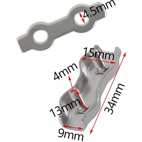 Taille: La longueur totale est d’environ 34 mm, la largeur est d’environ 15 mm, le boulon est d’environ 4 x 13 mm; Convient pour un câble métallique de 2 mm.