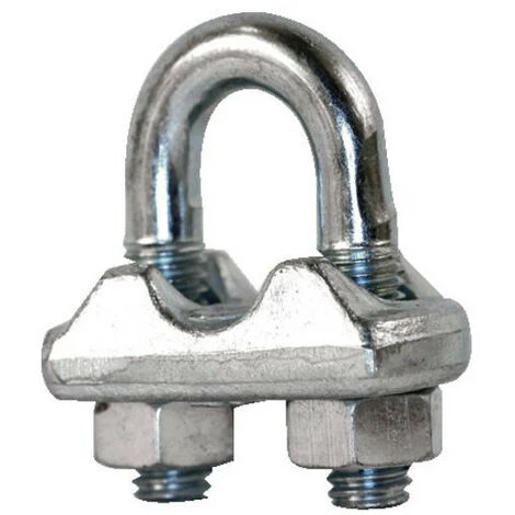 Étrier fileté aux deux extrémités avec une semelle striée assurant le blocage du câble, après serrage des écrous. Permet de former et fermer des boucles. L’étrier doit porter sur la partie « » » »morte » » » » et la semelle sur la partie « » » »active » » » » du câble. Une boucle se fait à minima avec 3 serre-câbles. Finition acier zingué blanc ou inox. Marquage : Ø, CE, matière