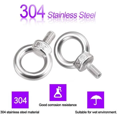 - 【Matériau du puits】 Acier inoxydable 304, haute dureté, résistance à la corrosion, peut être utilisé dans des environnements humides. La surface des boulons à œil en acier inoxydable est lisse, la force est uniforme, il n’est pas facile de l’endommager et il est durable.