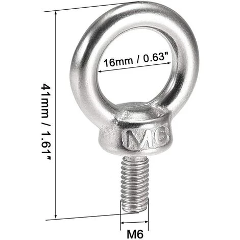 - 【Spécifications du produit】 Boulons à œil M6*11 longueur totale 41 mm, longueur du filetage : 12 mm, diamètre intérieur de l’anneau : 16 mm, diamètre extérieur de l’anneau : 27 mm.