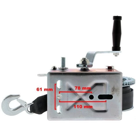 – Dimensions du treuil hors manivelle (L x l x H) : 26 x 16 x 16 cm