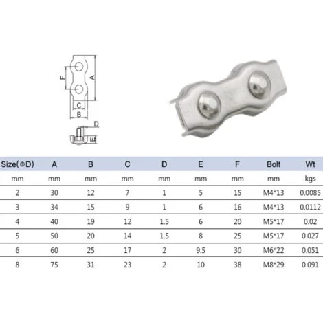 【Taille】 Longueur totale duplex clips: 30 mm, largeur latérale: 12 mm ,diamètre du filetage: 3,9 mm. une erreur de 0 ~ 3 mm. Le serre-câble à boulon duplex M2 convient pour un câble métallique de 2 mm.