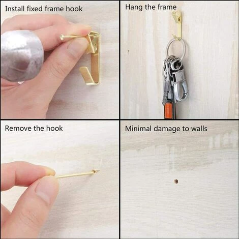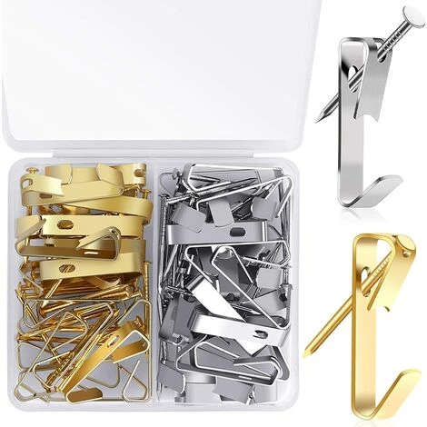 Acier inoxydable accroche cadre: Vous obtiendrez 20 crochets muraux dorés et 20 crochets argentés dans un sac, et 40 clous, tous stockés dans un étui de rangement pratique, en quantité suffisante pour votre utilisation quotidienne.