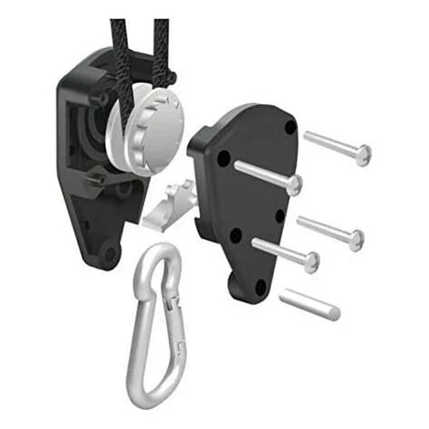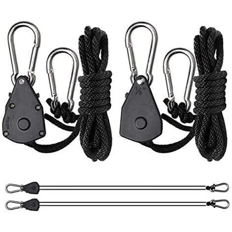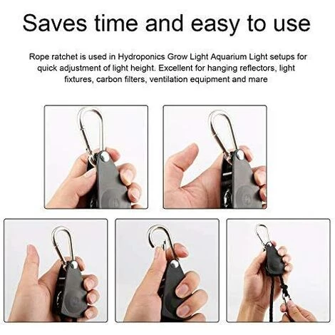 CaractéristiquesCe cliquet de corde tire la corde fermement et la bloque en place. Pour tous vos besoins de fixation, nos cintres en câble métallique fourniront la charge la plus lourde aux parties les plus délicates de votre équipement de salle de culture, afin que vous n’ayez pas à vous soucier de tomber, de glisser ou de vous laisser tomber. Parfait pour accrocher des luminaires, des réflecteurs, des filtres à charbon, des ventilateurs, des fleurs en pot, des ventilateurs et bien plus encore !Spécification-Couleur : Noir-Matériau : Nylon, alliage de zinc et acier inoxydable.-Taille : Environ 15 x 15 x 4 cm.Instructions1.Assurez-vous que le crochet avec poulie est bien fixé.2.Utilisez le crochet à l’autre extrémité et la ficelle qui y est attachée pour suspendre l’objet.3.Pour suspendre l’objet en hauteur, tirez sur la corde sans le crochet.4.Pour régler la hauteur des objets suspendus vers le bas, pousser vers le haut le levier de commande d’arrêt de la poulie de suspension et tirer la corde avec le crochet vers le bas jusqu’à la hauteur réglée.