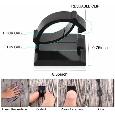 Nombreuses utilisations : ces clips de câble sont couramment appliqués sur des surfaces lisses et propres telles que le métal, le plastique, le bois, le carrelage et plus encore. Ils sont adaptés pour une utilisation à la maison, au bureau et dans la voiture