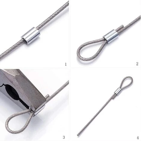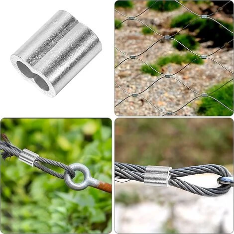 Manchon en aluminium de haute qualité avec une taille appropriée: les colliers de compression sont en aluminium, sont durs et résistants à l’usure. Ils ne sont pas faciles à rouiller et sont durables. Cette pince en aluminium s’adapte sur un câble métallique de 1,5 mm / 0,06 pouce.
