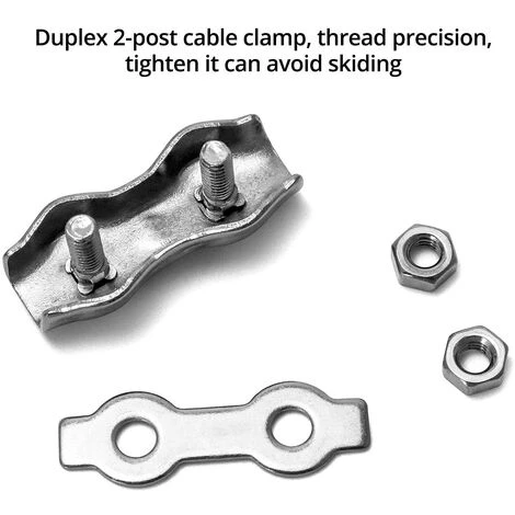 【LARGE APPLICATION】Nos pinces à câble duplex peuvent être utilisées pour fixer les cordes à linge, les voiles d’ombrage, les auvents, les bannières et les câbles dans la vie quotidienne. Ils sont très robustes et durables; ils sont également largement utilisés dans l’industrie, la construction, le transport, les navires et les ancres.