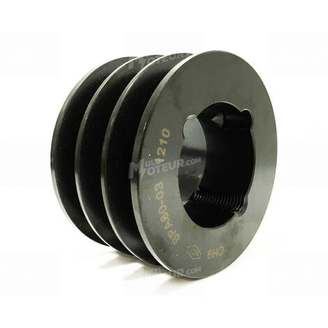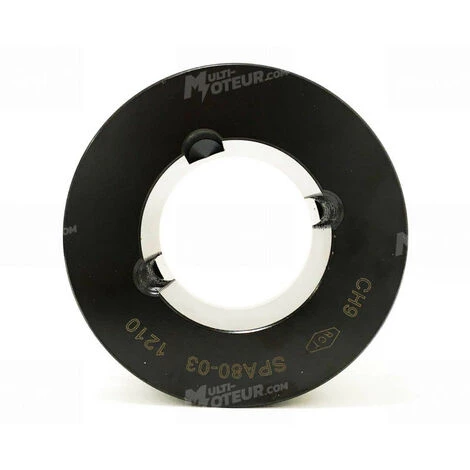 La poulie est fournie avec un moyeu amovible qui lui permet d’être montée sur des moteurs électriques dont le diamètre d’arbre est différent. Ce système ingénieux permet un remplacement facile et rapide de la poulie sur l’arbre moteur, sans qu’il soit nécessaire de réaliser un alésage.