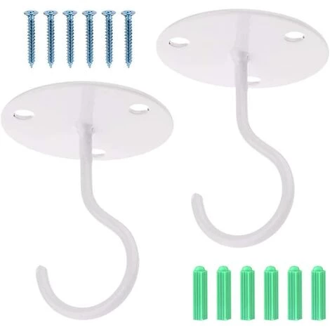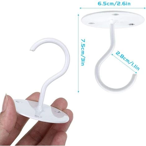 Lot de 2 Crochets de Plafond à Montage Mural Blanc, Crochets de Suspension Pour Plaque en Métal, Crochet de Plafond en Fer Pour Plante Suspendue/Suspensions/Paniers/Mangeoires à Oiseaux/Lanternes