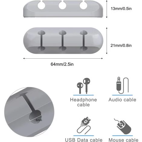 - Convient aux cables d’une longueur inférieure à 6 mm, par ex. B. Cables informatiques, cables audio, cables de chargement USB et cables réseau.