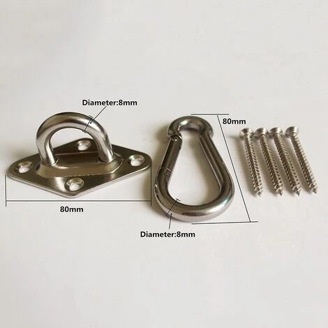 Ce kit hamac pour support de hamac comprend 2 coussinets losanges en acier inoxydable, 8 vis en acier inoxydable et 2 mousquetons �� ressort, l’acier inoxydable 304 offre la plus haute qualit��, le Les vis en acier inoxydable mesurent 50 mm de long