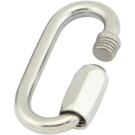 Principales caractéristiques: Liens rapides de qualité supérieure pour chaînes / câbles, connexions de câbles; Fermeture à l’écrou fileté pour plus de sécurité. Excellent choix pour les applications de navigation de plaisance, de voile, marine et autres conditions difficiles. Attache rapide et simple, utile pour attacher une chaîne ou un câble. Avis: lorsque vous l’utilisez , Spécification Taille: diamètre de broche: 6mm, longueur: 50mm, largeur intérieure: 13mm, bouche ouverte: 6.5mm. Matériel: acier inoxydable 304. NW: 181g Paquet incluant: 5 * mousqueton rapide