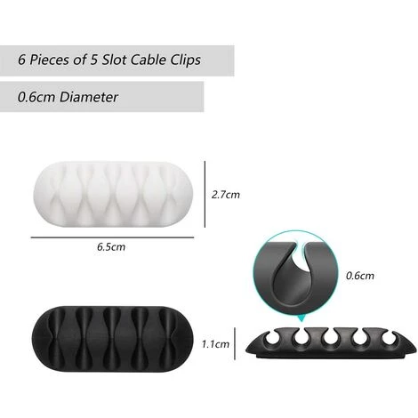 - PROPRE ET ORGANISÉ – 6 pièces de clips de câble à 5 emplacements sont disponibles en 3 blancs et 3 noirs, design compact et plusieurs supports de câble vous laissant plus d’espace et offrant un accès pratique aux câbles dont vous avez besoin.