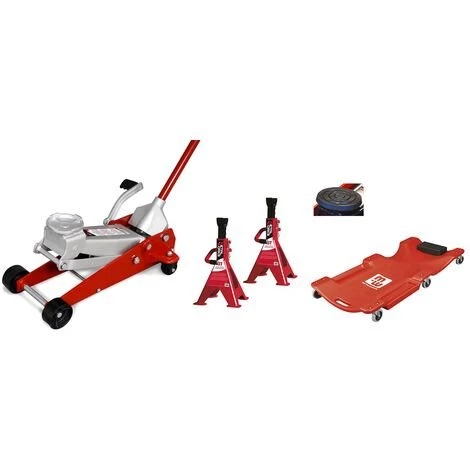 Set composé d’un cric rouleur CATM300T, d’une paire de chandelles CAGS3T, d’une selle en caoutchouc CATM300TRUB et d’un chariot de visite MTB10.