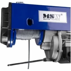 MSW Treuil Palan Électrique Levage À Câble 230V 200 / 400 Kg 950W + Télécommande – Bleu, Argent
