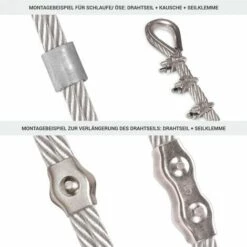 - Notre gamme comprend également d’autres sets de câbles métalliques de différents diam?tres et constructions, ainsi que les accessoires appropriés tels que des serre-câbles, des cosses, des tendeurs, des crochets et bien d’autres produits.