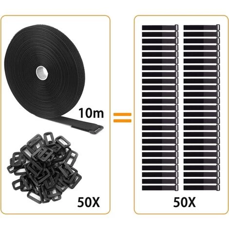 【50 boucles en plastique】 Attaches de câble avec les 50 boucles en plastique,Le scratch cable peut être coupé dans n’importe quelle longueur à partir du rouleau de 10 m, puis connectez les boucles en plastique pour former des boucles.