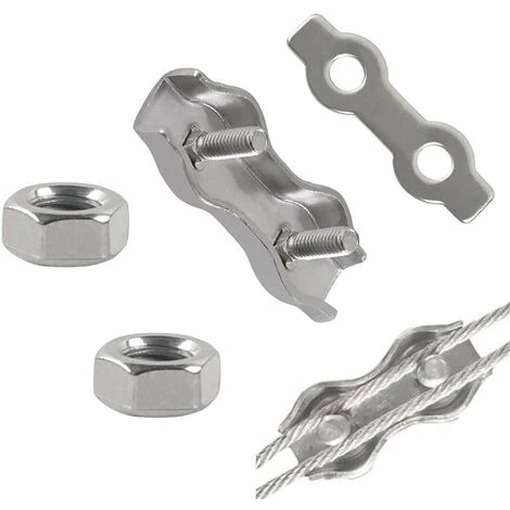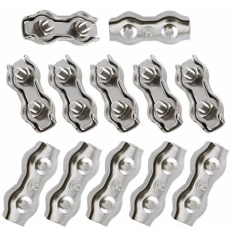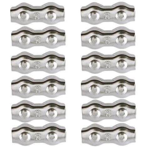 Serre Cable Acier 3mm 12 Pièces Serre Câbles Duplex Pince de Câble Acier inoxydable 304 D’agrafe de Câble,Câble Poignées pour 2mm Câble Métalliques Pince À Câble Corde à Linge