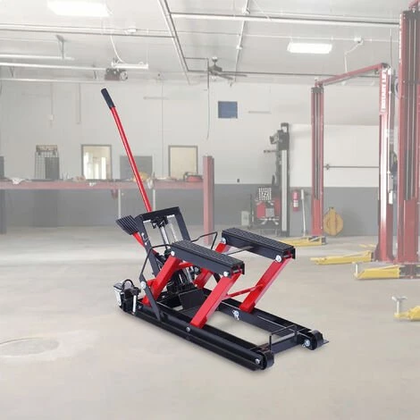 Soulevez et Ă©quilibrez facilement les motos et autres petits vĂ©hicules pendant les travaux de rĂ©paration et d’entretien grâce Ă ce cric pour motos de grande capacitĂ©. Il est Ă©quipĂ© d’une pompe hydraulique actionnĂ©e par le pied qui permet de soulever du sol la plupart des types de VTT, de motos et d’autres petits vĂ©hicules en toute sĂ©curitĂ©.