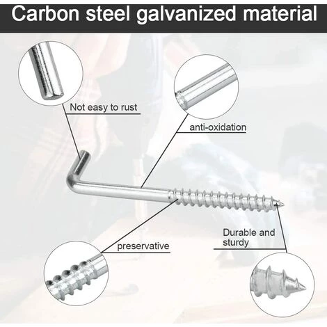 Matériau en acier au carbone Premium: Le crochet à vis en forme de L est constitué d’acier au carbone de haute qualité et est galvanisé sur la surface. Il n’est pas facile de la rouille, a une bonne oxydation et une bonne résistance à la corrosion, est durable et présente une longue durée de vie, garantissant qu’il peut résister à l’épreuve du temps, est un bon assistant pour vos objets suspendus.