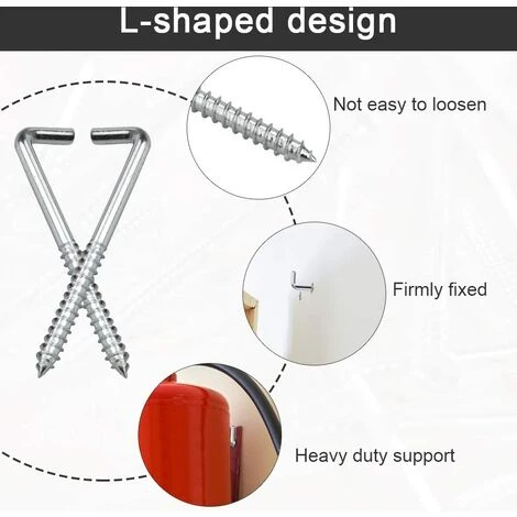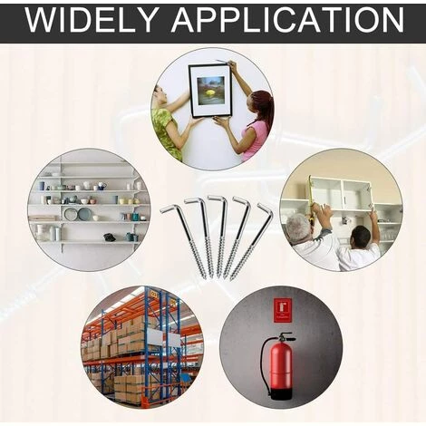 Conception en forme de L: le crochet à vis adopte une conception en forme de L, qui peut être fermement fixée sur le panneau, pas facile à relâcher et peut être maintenu par le temps. Les crochets à vis en acier inoxydable sont parfaits pour les broches ou directement serrées avec du bois.
