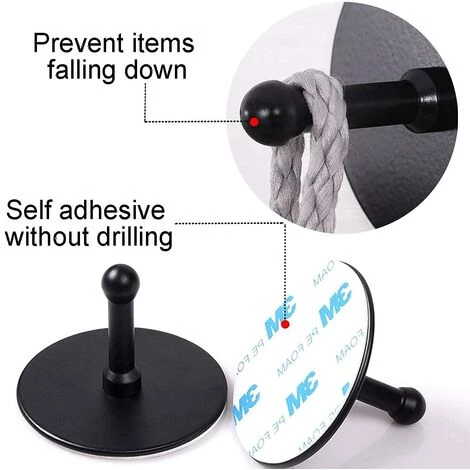 Design de style simple: total de 4 crochets adhésifs de haute qualité, avec surface noire de la poudre de poudre et perspectives uniques (fines avec des perles anti-gouttes parfaites), ces crochets muraux sont la rouille de l’eau et la preuve d’huile.