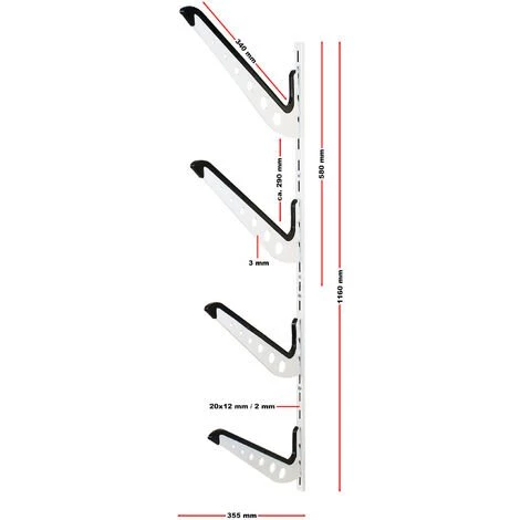 | Dimensions | Hauteur totale du rail mural : 116 cm Longueur de la buse de stockage : 34 cm |