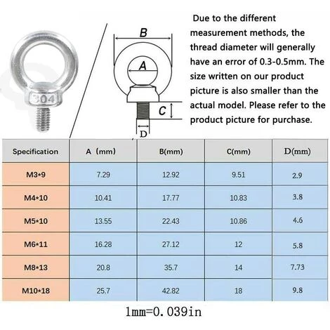 Avantages du produit: Vis de boulon à oeil à anneau de levage à filetage mâle en acier inoxydable 304, elles sont faites de très grandes machines. Après de nombreuses expériences, il a prouvé que l’extérieur ne sera pas oxydé et rouillé.
