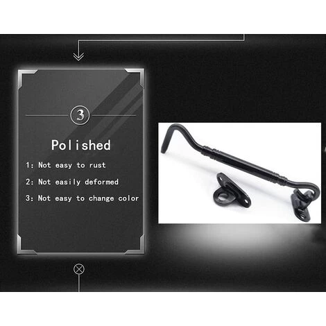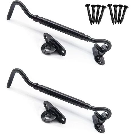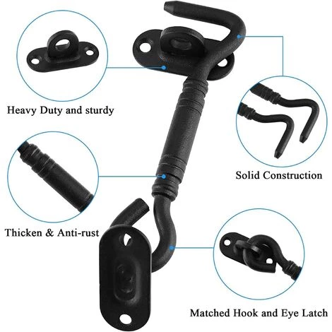 - Largement application : peut être utilisé pour fermer les fenêtres, volets, granges, portes coulissantes et doubles, portails, portes de garage et de hangar. La serrure à crochet de porte peut être utilisée comme butée de porte.La tempête gonfle la porte, offre une bonne protection de sécurité pour votre maison et vos meubles privés.